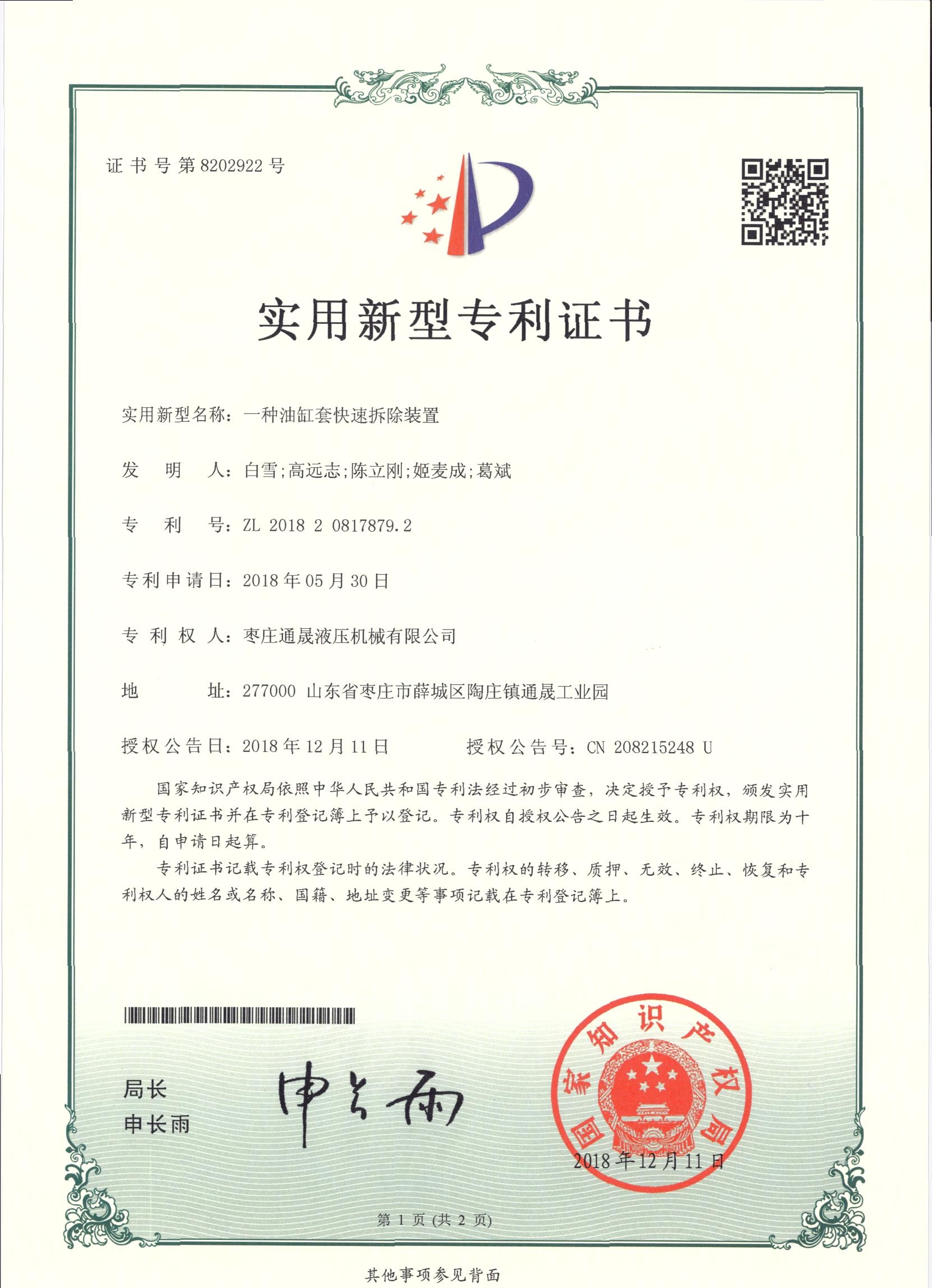 • 專利證書